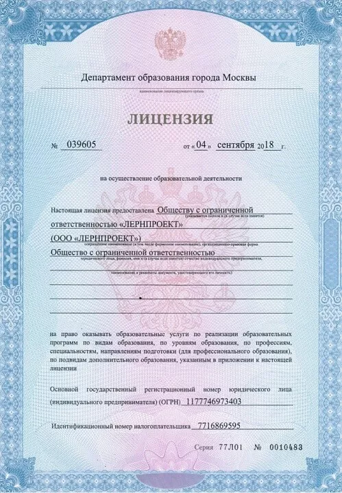 У нас есть лицензия на образовательную деятельность
